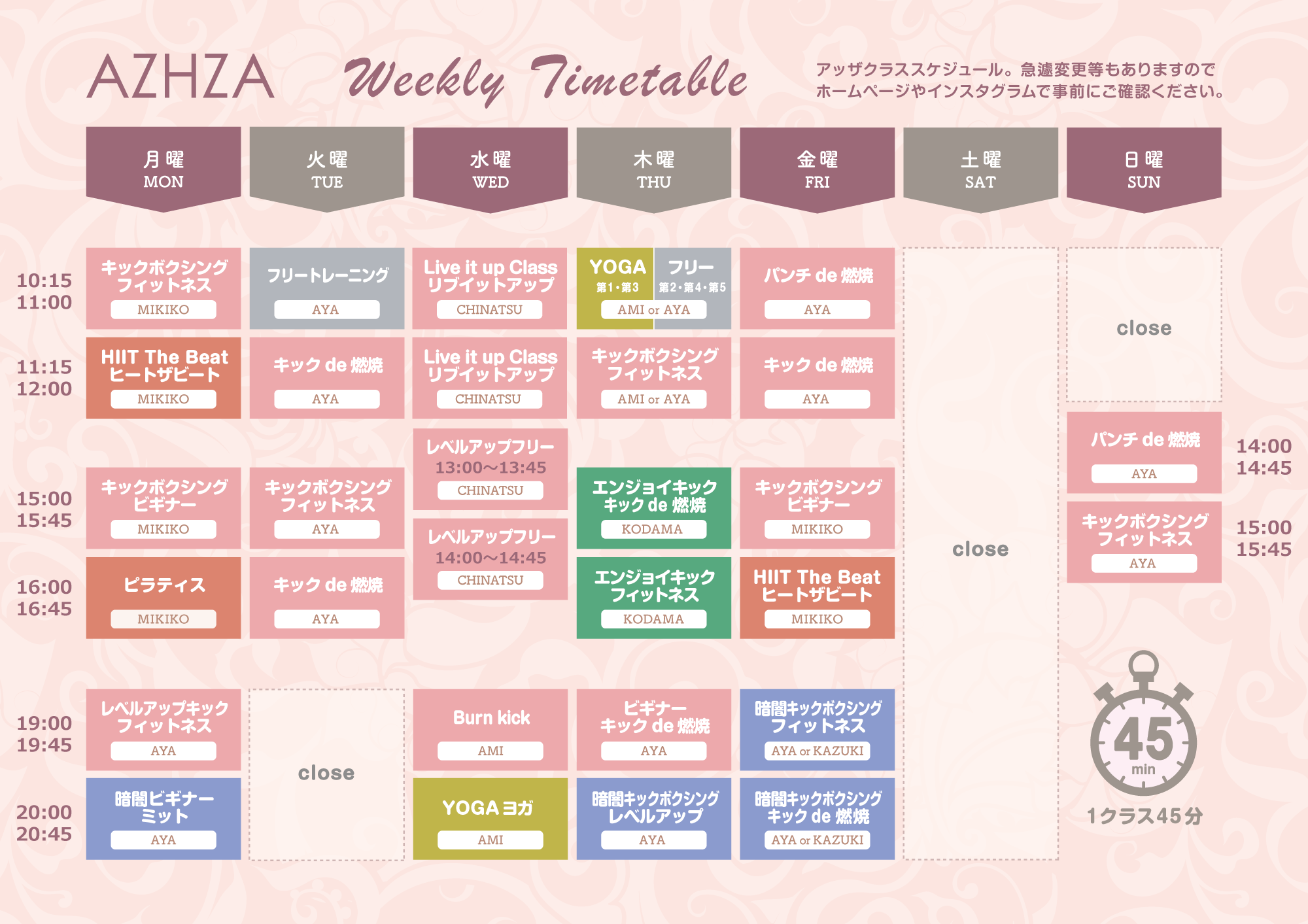 キックボクシングというと厳しい・キツイ格闘技というイメージですが、AZHZAは女性が楽しめる「やさしいクラス」からあるので初心者からでも安心してトレーニングを始められます!